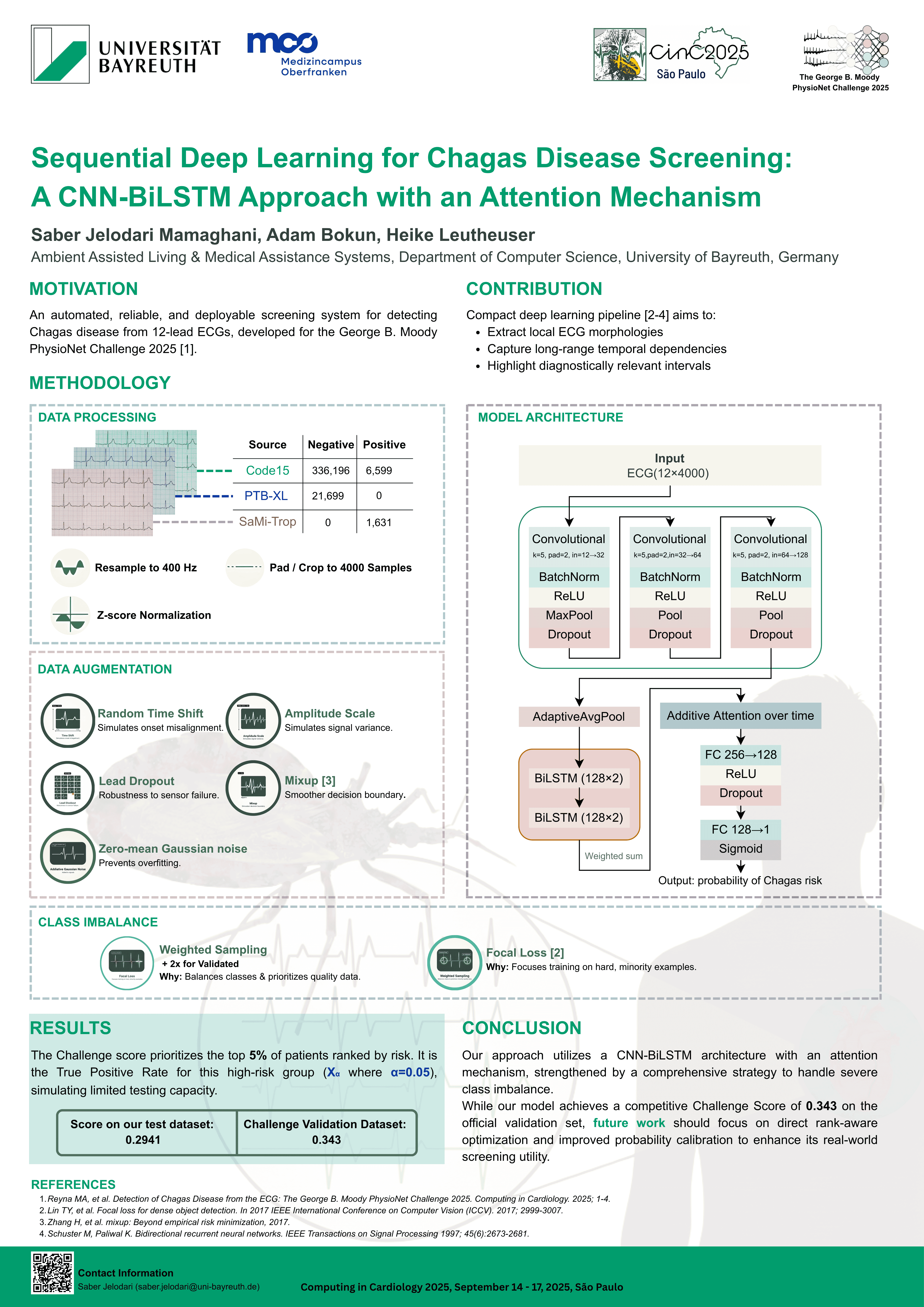 This year’s challenge focused on developing advanced machine learning methods for the detection of Chagas disease from ECG data, bringing together more than 40 international teams from universities, hospitals, and industry. Our submission, entitled: